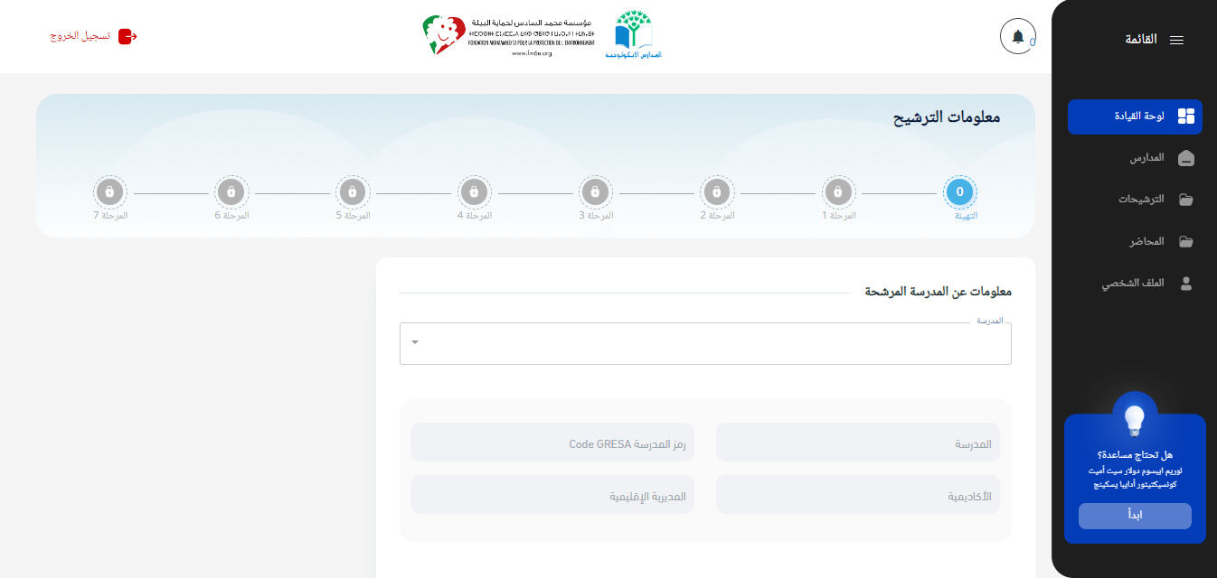Permet de faire l'inscription dans la plateforme en tant qu'école , l'école remplit le formulaire et l'envoie . après la validation par l'admin ou le coordinateur provincial, elle peut se connecter