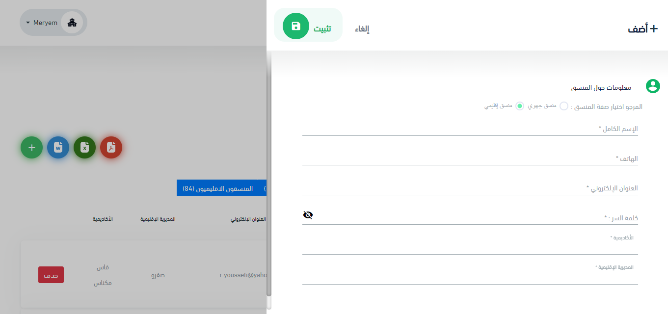 Ici dans l'ajout d'un coordinateur, on se trouve avec deux options coordinateur provincial et coordinateur regional