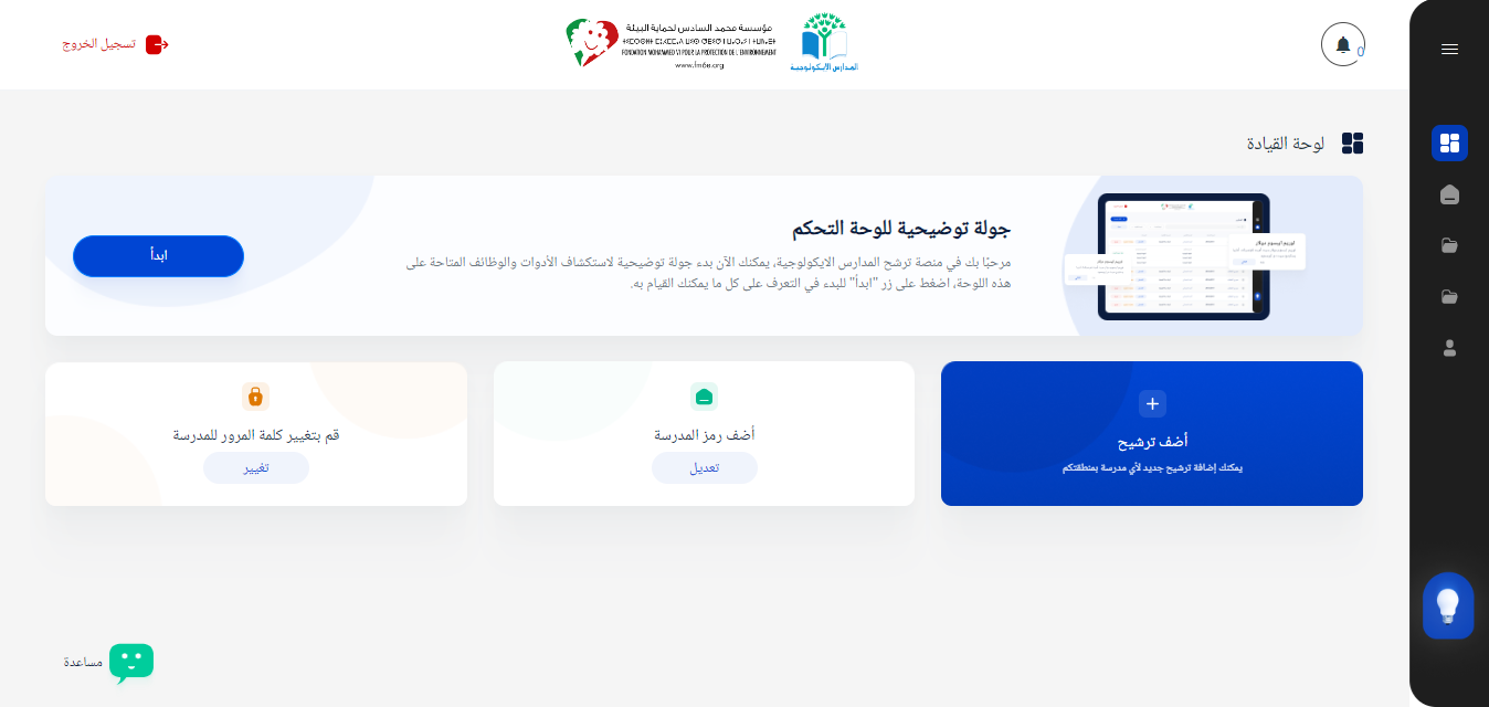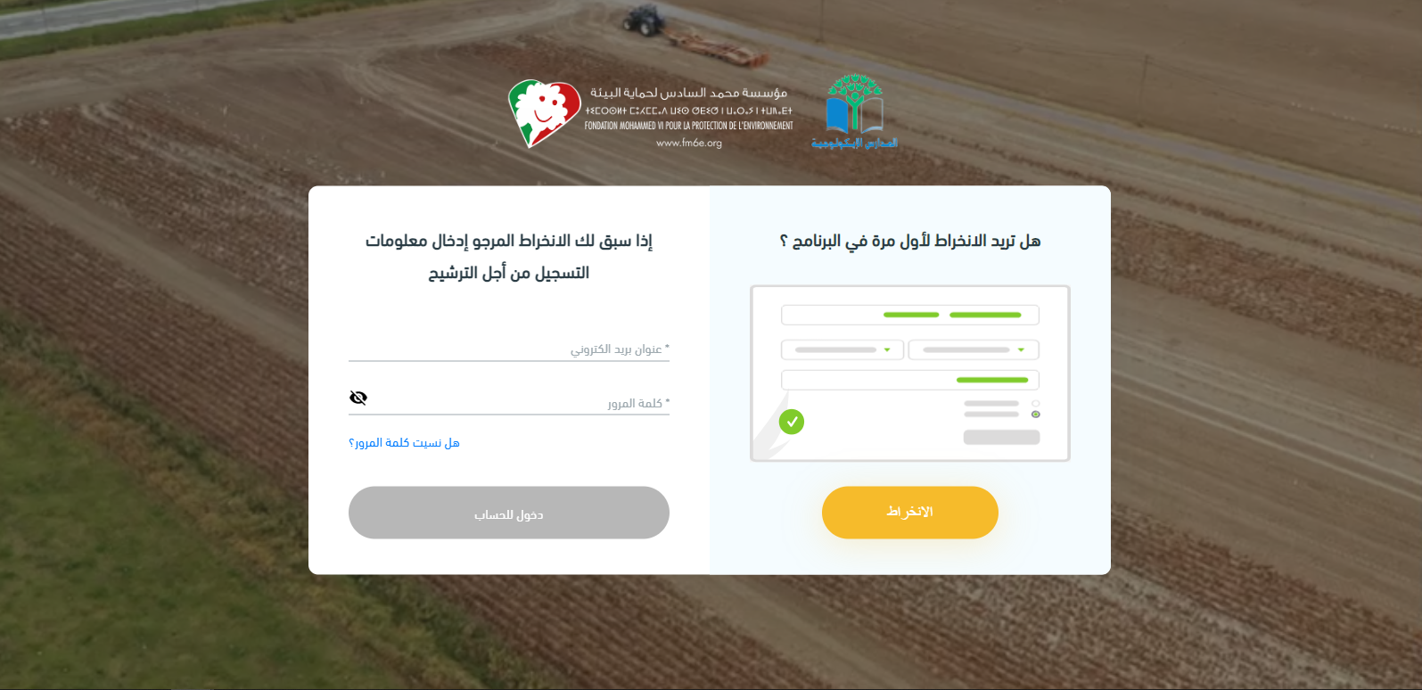 Permet de faire l'authentification si vous avez déjà un compte admin,coordinateur, jury ou école validé , permet aussi de créer un compte école en cliquant sur "الانخراط", quand la période d'inscription ouverte