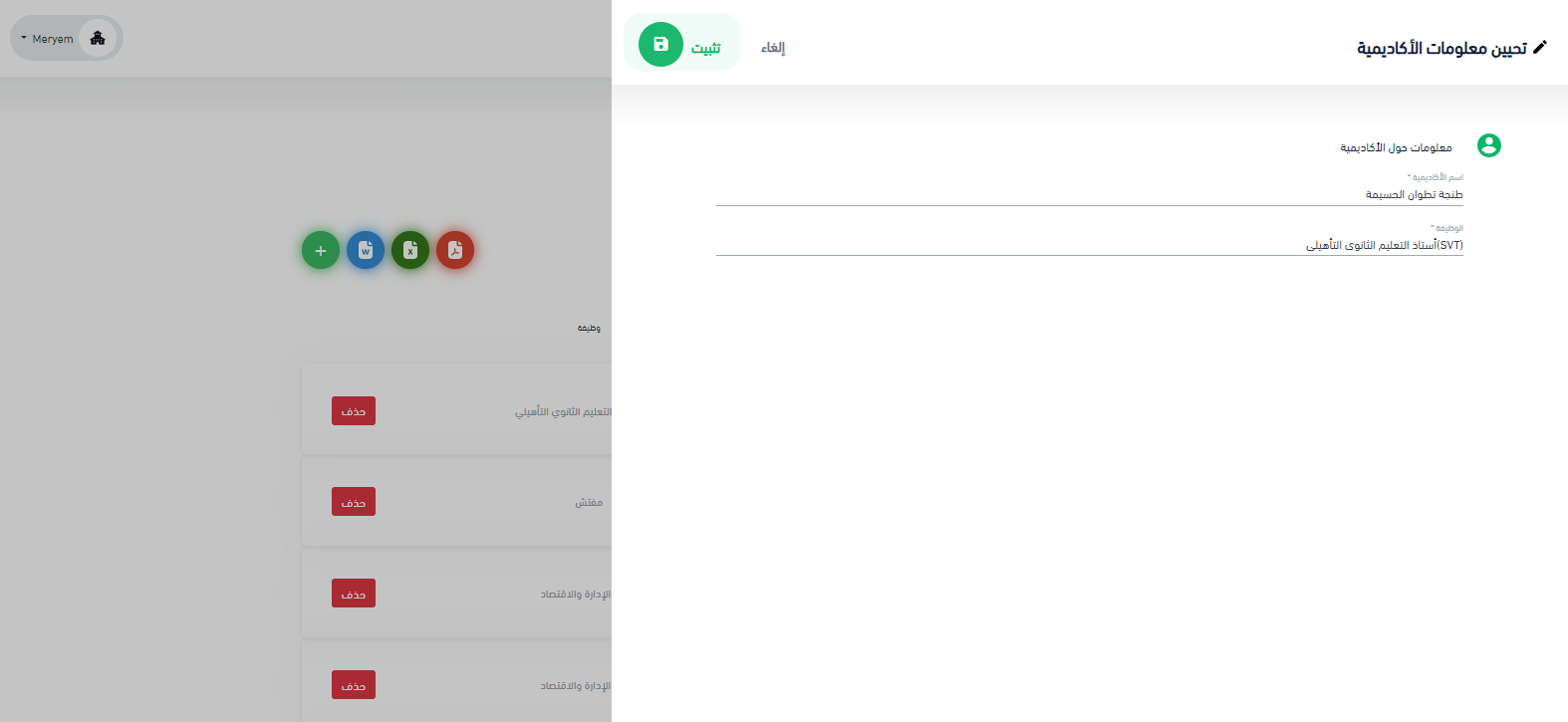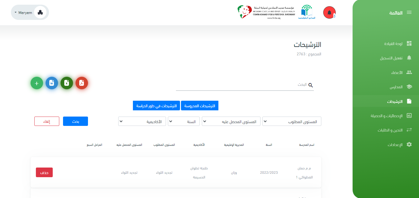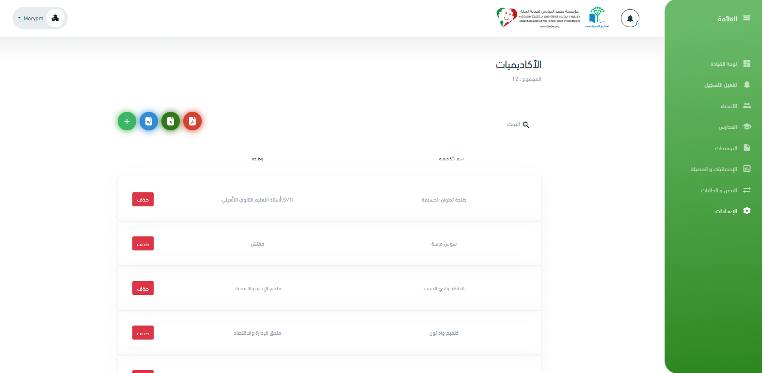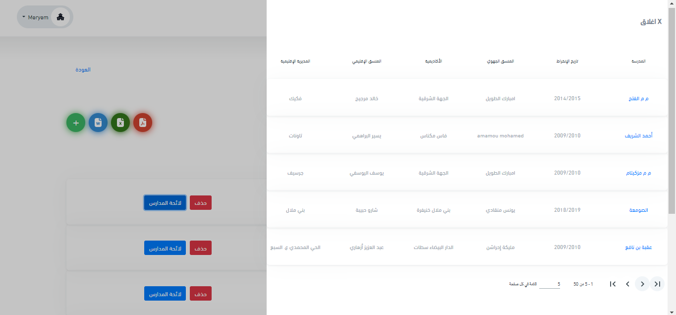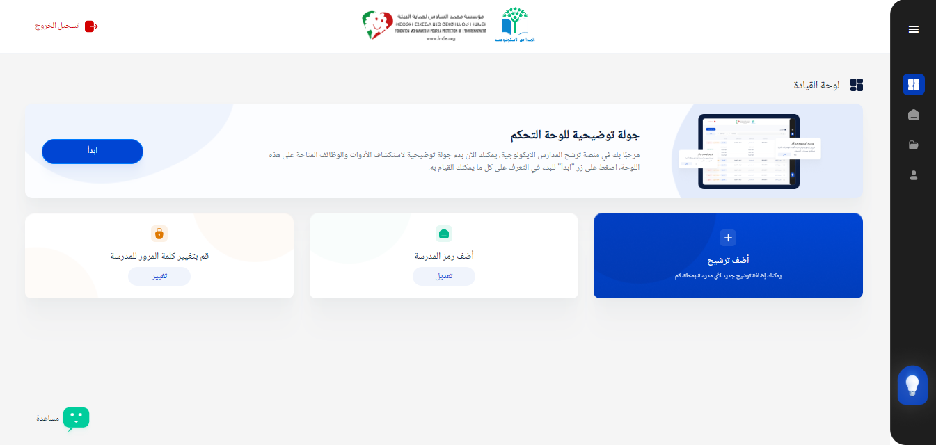 - "المدارس في انتظار التفعيل" Permet de consulter la liste des écoles qui attendent la validation de leur inscription dans la plateforme, et par la suite valider ou supprimer ces derniere