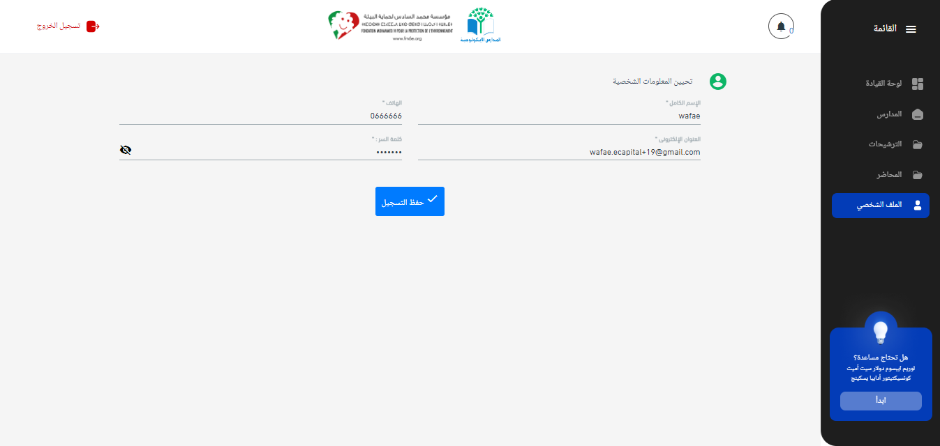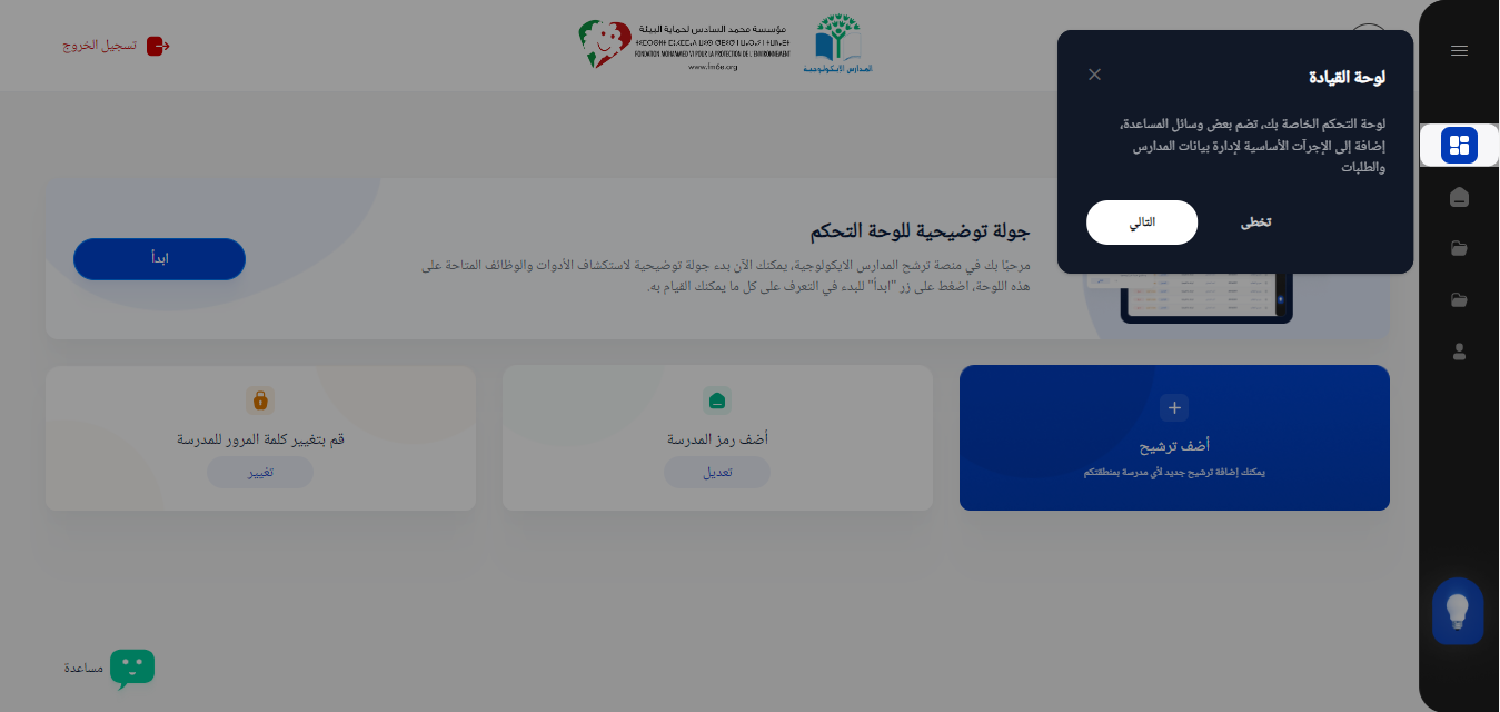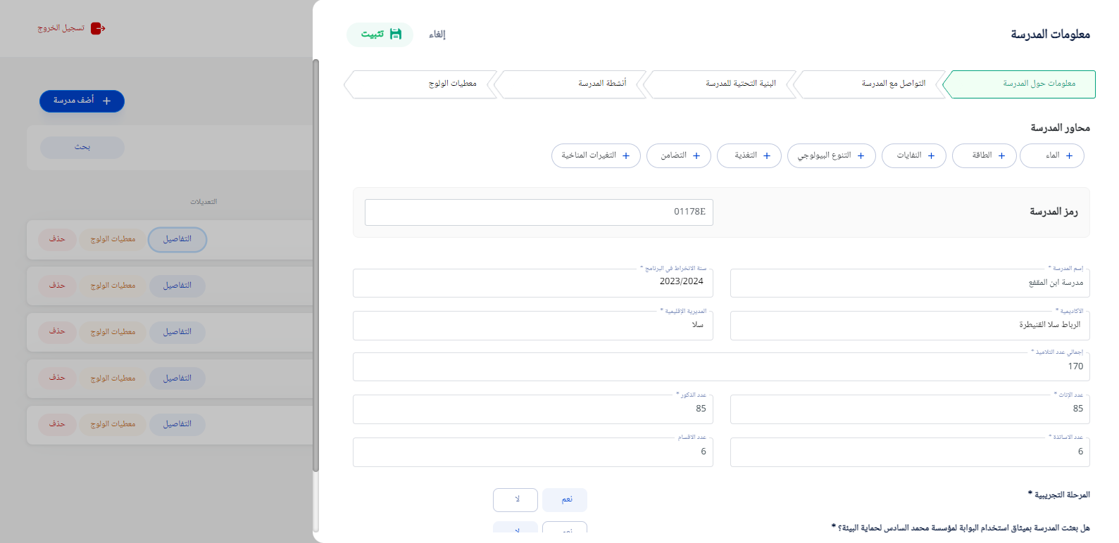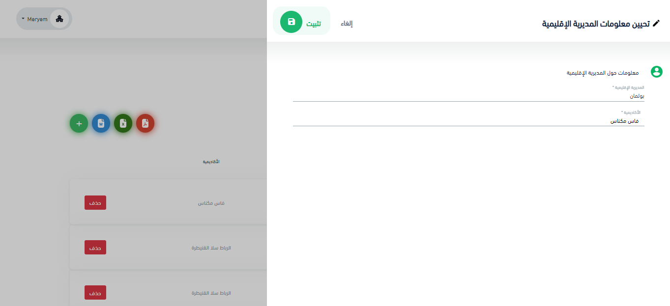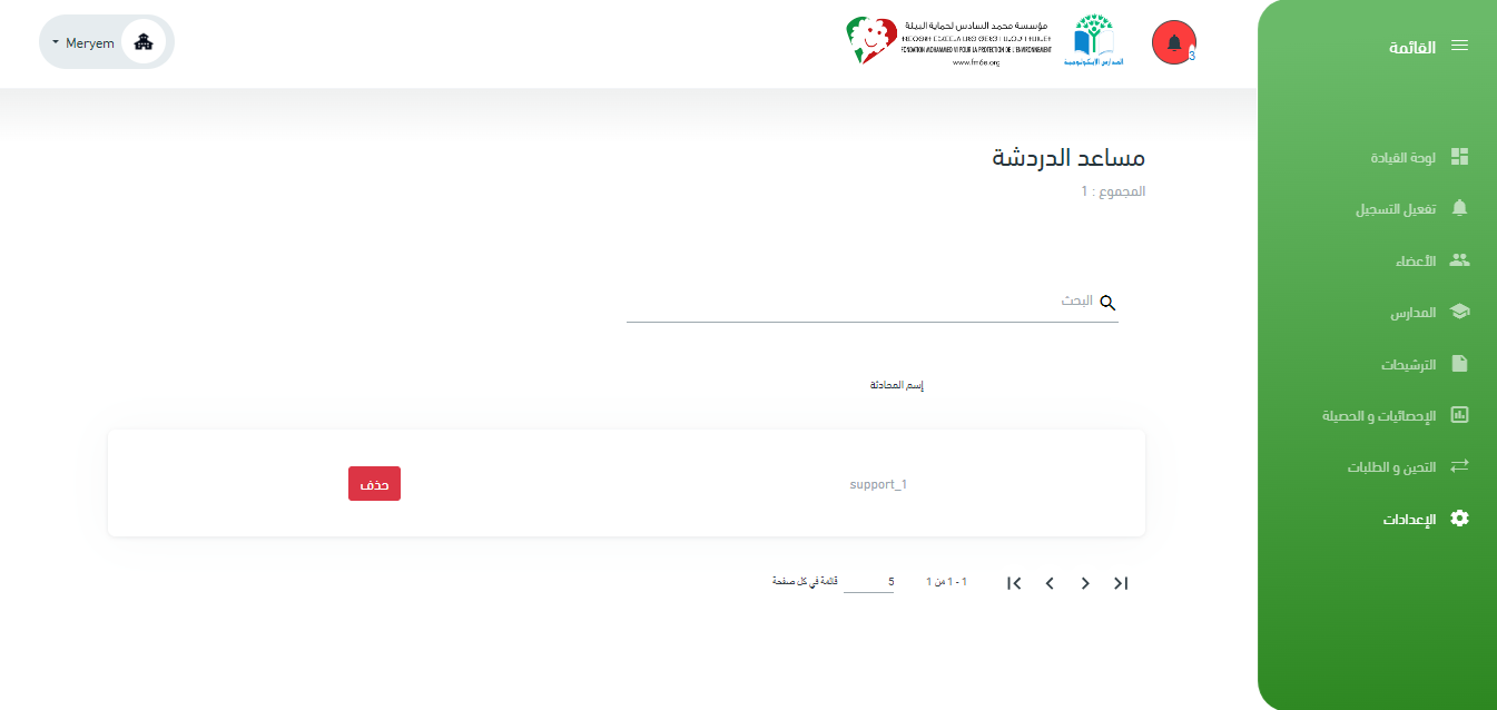 - "المدارس في انتظار التفعيل" Permet de consulter la liste des écoles qui attendent la validation de leur inscription dans la plateforme, et par la suite valider ou supprimer ces derniere