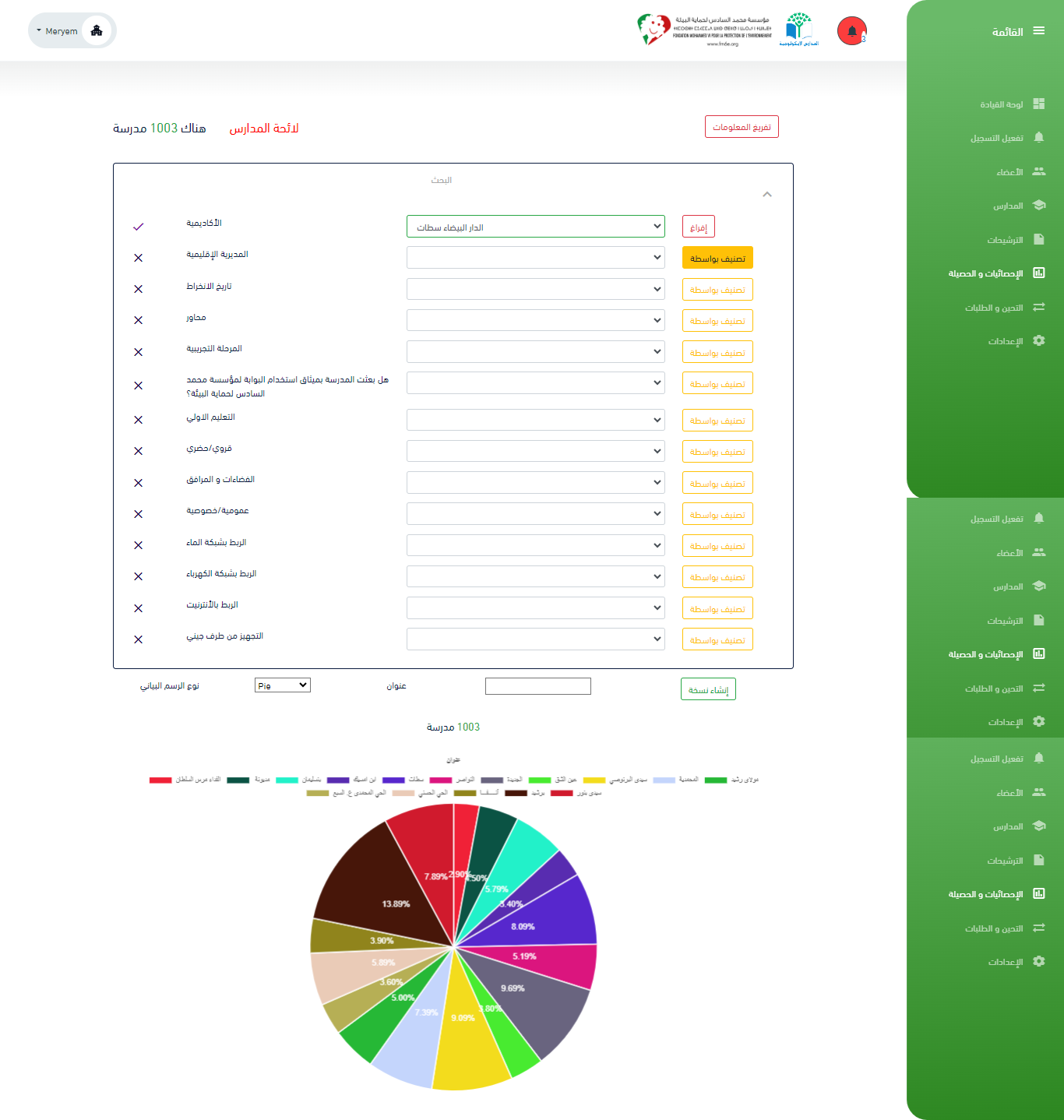 Par exemple, la page de statistiques des écoles vous offre un large éventail de filtres basés sur les informations de l'école.